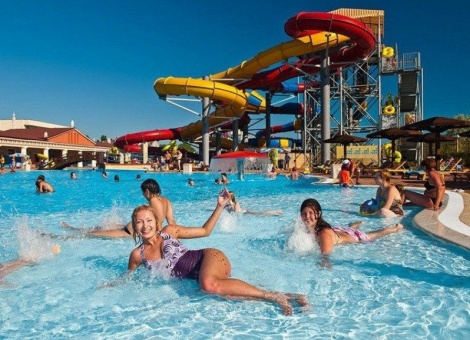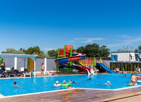 - Детский и взрослый подогреваемый бассейн с мини-аквапарком и водными горками размером 25 x11 метров